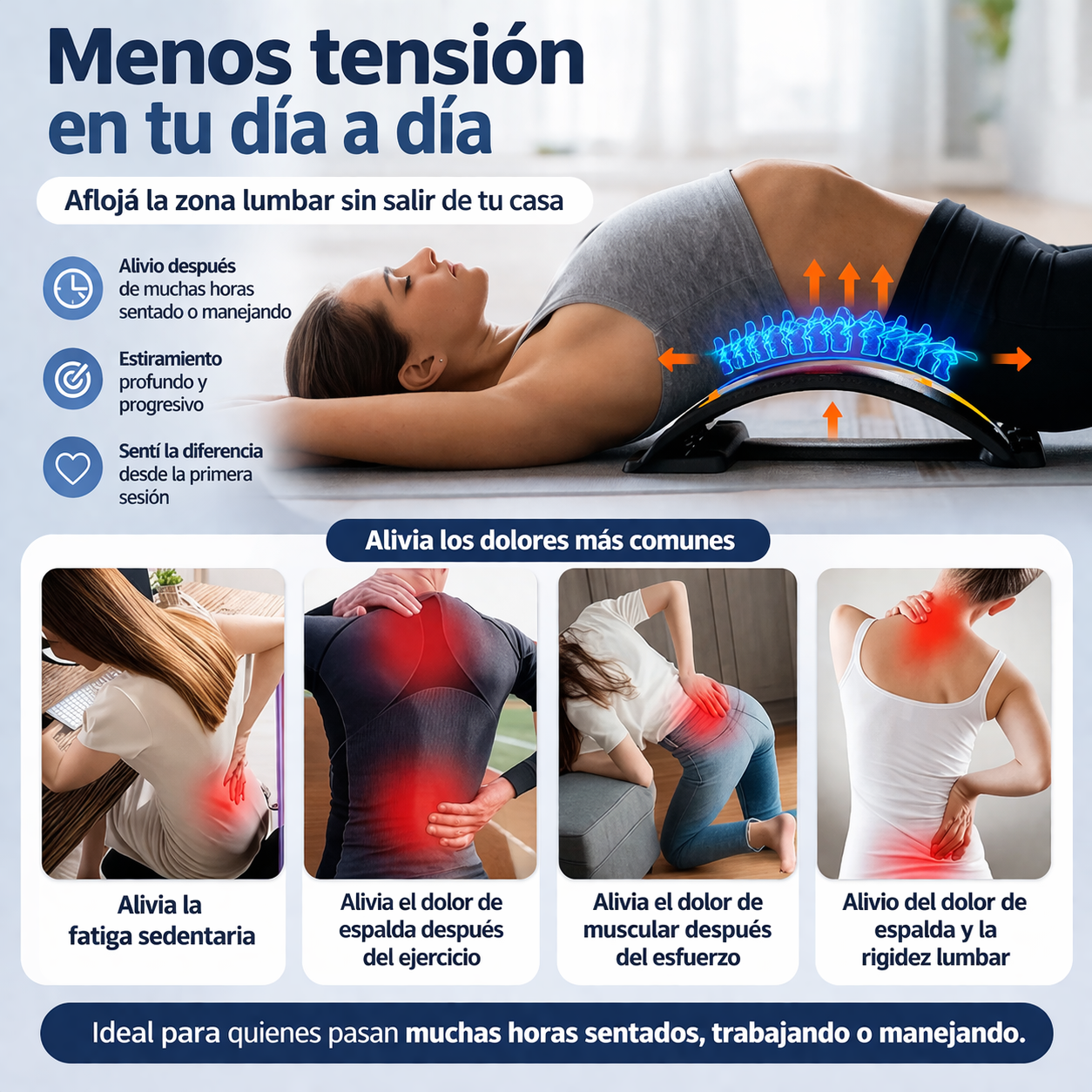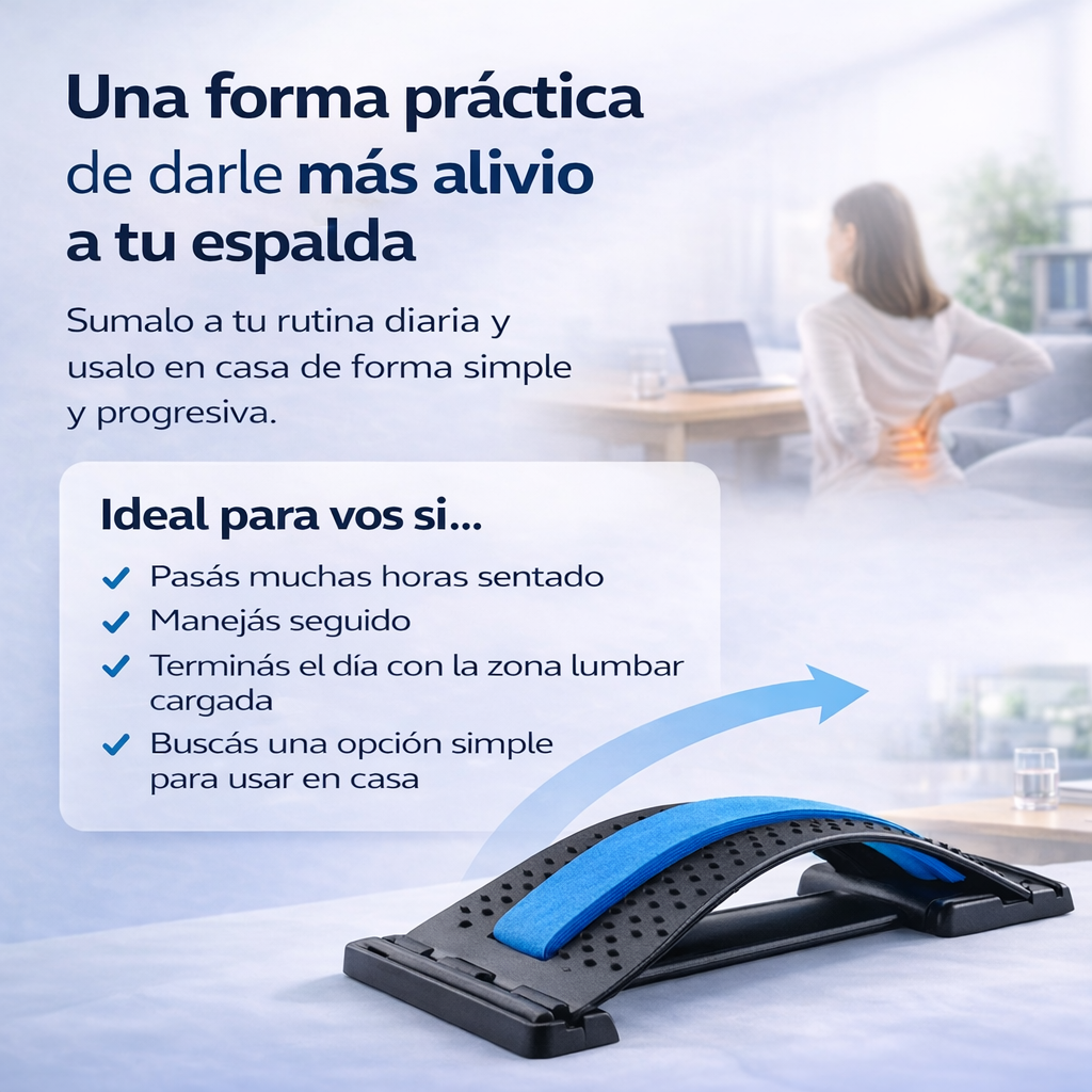 👉 Apoyalo sobre una superficie firme, elegí una de sus 3 alturas y recostate de forma progresiva para que la zona lumbar apoye cómodamente.